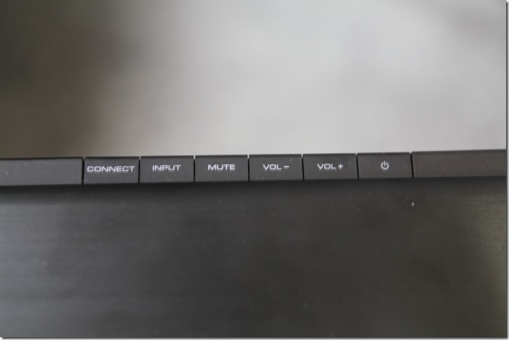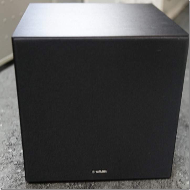 ▲重低音喇叭本體:喇叭網罩無法拆卸,線材除了電源線之外,還有兩個連接線輸入孔,當無法使用無線連結時,能夠以有線方式連結。當開啟電源後,重低音本體會自動與YSP-2700 Soundbar 本體自動連結。指示燈在通電並正常連接後會亮綠燈,非常簡單方便。