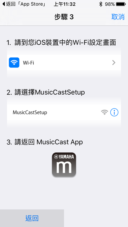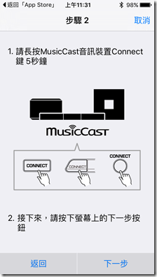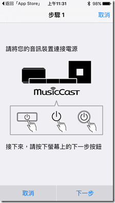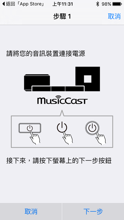 ▲經過 app 的引導:步驟 1 / 2 / 3 指示進行設定,便可連結手機、平板裝置與 YSP-2700。